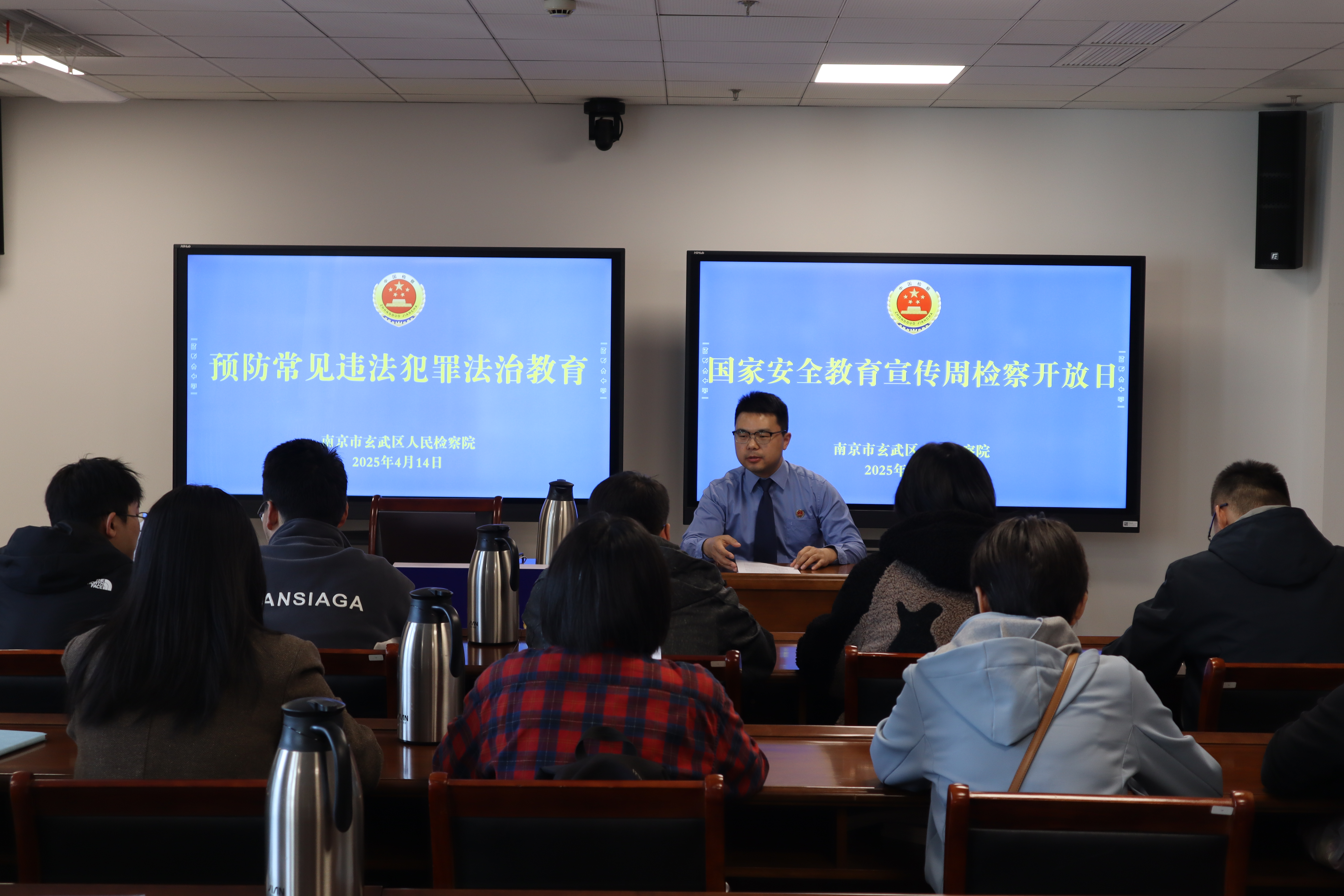 在第十个全民国家安全教育日到来之际,为深入学习贯彻总体国家安全观,增强学生党员维护国家安全的责任感和使命感,4月14日下午,22级专硕党支部全体党员在专职组织员韩自存和辅导员刘东阳老师的带领下前往玄武区人民检察院开展“国家安全.青年有责”铸牢国家安全意识主题教育党日活动,党员们通过实地参观、知识竞答、入党宣誓、案例学习及座谈交流等形式,进一步强化国家安全法治意识。
