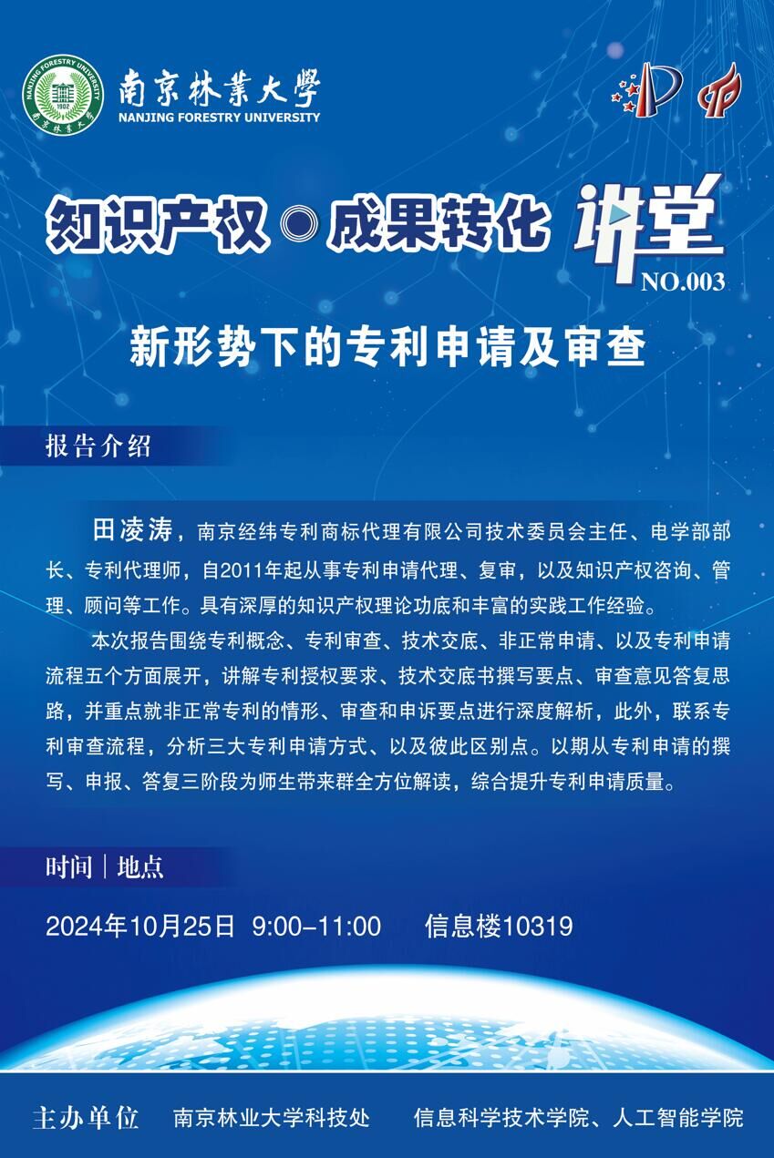 科技处与信息院联合举办题为“新形势下的专利申请及审查”专题讲座,报告主要针对专利申请质量提升和非正常专利问题展开全面讲解,时间:10月25日(本周五)上午9:00,地点:信息楼10319